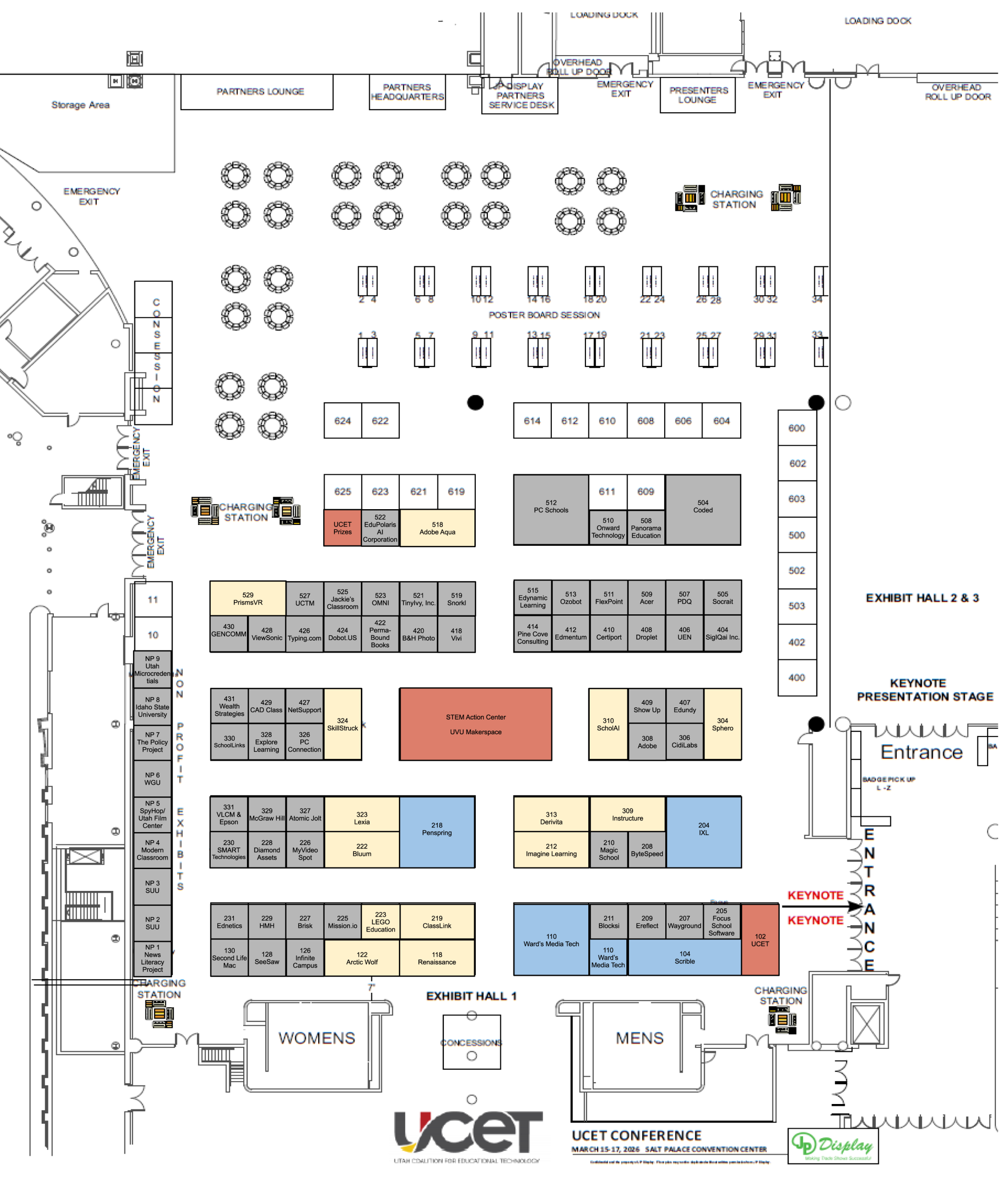 Booth numbers will be assigned by JP Displays at a later date. Partner names will be added by UCET’s Partner Liaison to the map as payments are received.
