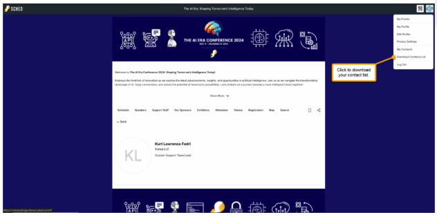 - After scanning attendee QR codes, export a CSV file containing shared contact details.
